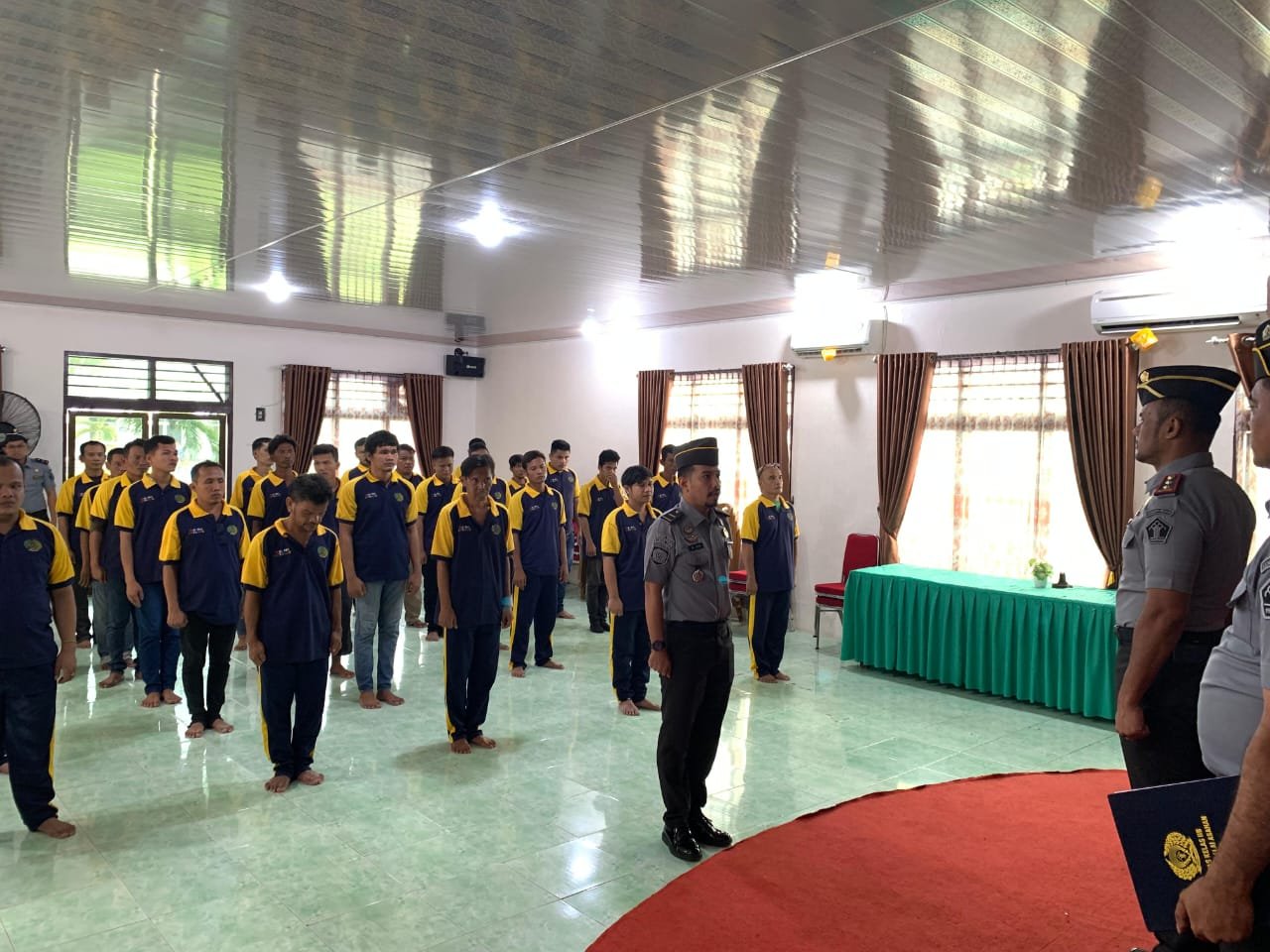 Pemberian remisi oleh Kalapas Tanjung Balai Asahan (TBA) Irhamuddin, didampingi Kasi Binadik Rudi Sembiring, di aula Lapas TBA.