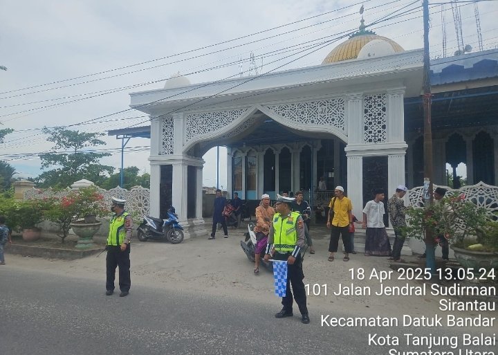 Tampak sejumlah personel kepolisian Polres Tanjungbalai siaga dan membantu jemaat masuk dan keluar gereja, termasuk Kasat Lantas Tanjungbalai AKP Agustinus Banjarnaor.