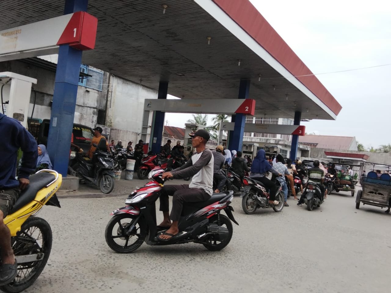Akibat kelangkaan bahan bakar minyak (BBM) yang terjadi saat ini, ratusan warga para pengendara sepeda motor dan mobil, terpaksa harus rela antre berjam-jam untuk mengisi BBM jenis bio solar dan pertalite di sejumlah SPBU yang ada di Kota Tanjungbalai.