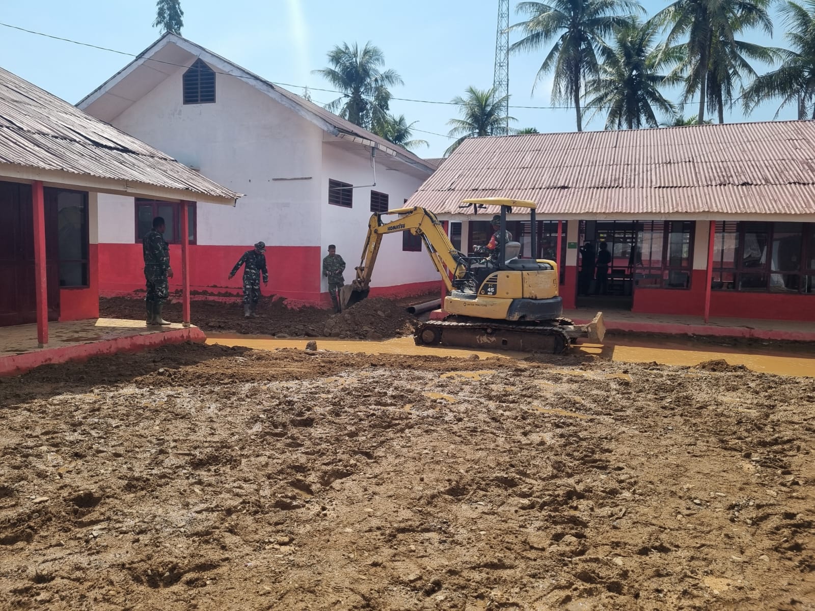 Sejumlah alat berat, seperti excavator, bulldozer, mobil tangki air, dan mobil dump truck dikerahkan untuk memperbaiki infrastruktur yang rusak. Pekerjaan meliputi normalisasi sungai, pembangunan jembatan, pembersihan material longsor, serta pembersihan lumpur yang masuk ke sejumlah sekolah, rumah ibadah, dan badan jalan.