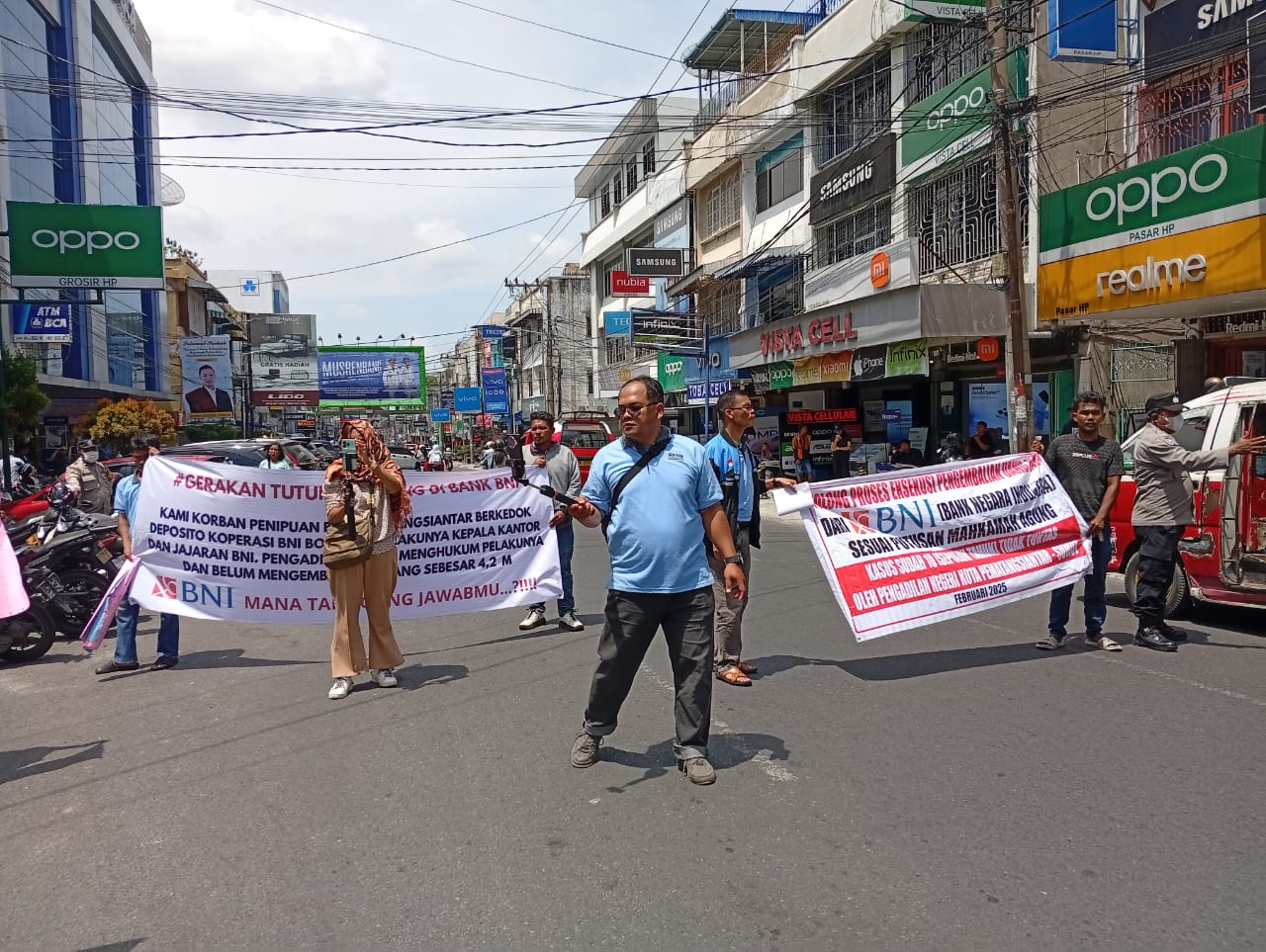 Pematangsiantar(harianSIB.com)Belasan nasabah korban deposito koperasi Swadharma mendatangi kantor PT BNI Cabang Pematangsiantar di Jalan Me