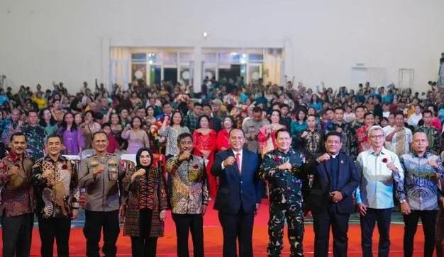 Wali kota Binjai H Amir Hamzah bersama ribuan umat kristiani merayakan Natal Oikumene 2025 dengan penuh sukacita di GOR Kota Binjai, Sabtu (27/12/2025). (Foto: Dok/Diskominfo Kota Binjai).