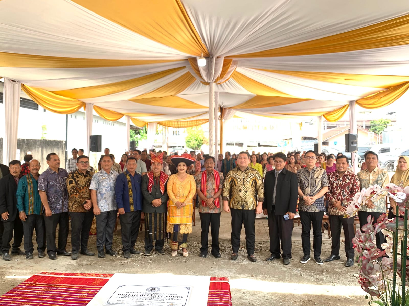 Wali Kota Binjai, Amir Hamzah, foto bersama usai meresmikan Rumah Dinas Pendeta GBKP Klasis Binjai-Langkat di Jalan Ahmad Yani No. 10, Kelurahan Kartini, Kecamatan Binjai Kota, Jumat (27/2/2026). (Dok: Diskominfo Binjai)