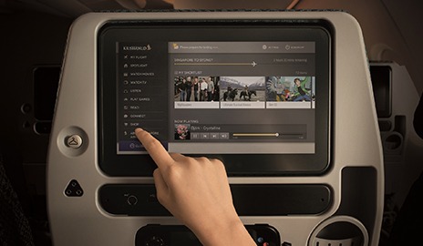 Pengalaman berbasis teknologi juga hadir di dalam kabin pesawat. Contohnya bila dilihat lewat sistem hiburan dalam penerbangan KrisWorld yang menyediakan ratusan film terbaik, musik hingga permainan bagi penumpang selama perjalanan. Konektivitas juga tidak dilupakan. Layanan Wi-Fi terhubung selama mengudara.